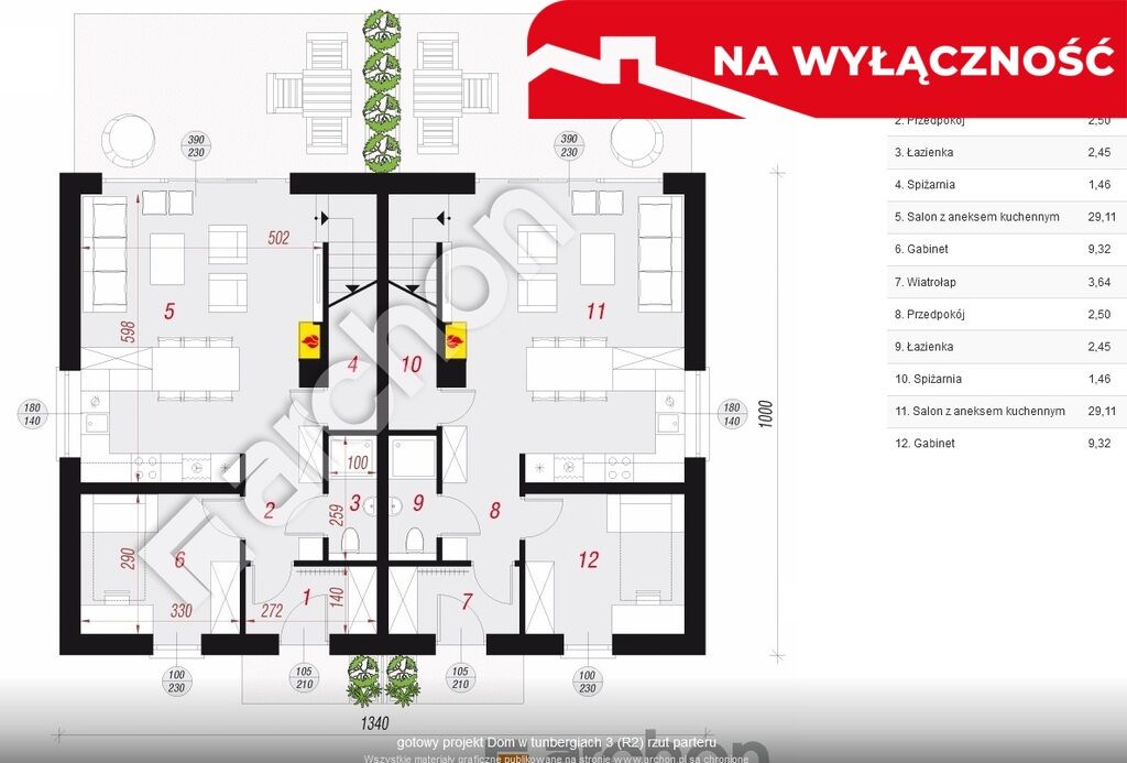 zabudowie bliźniaczej, realizowany według projektu Dom w tunbergiach